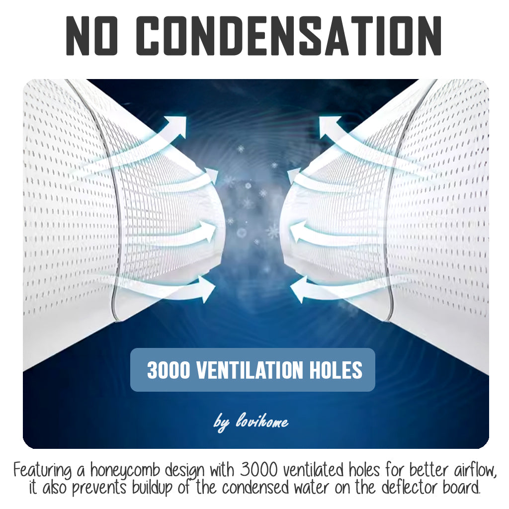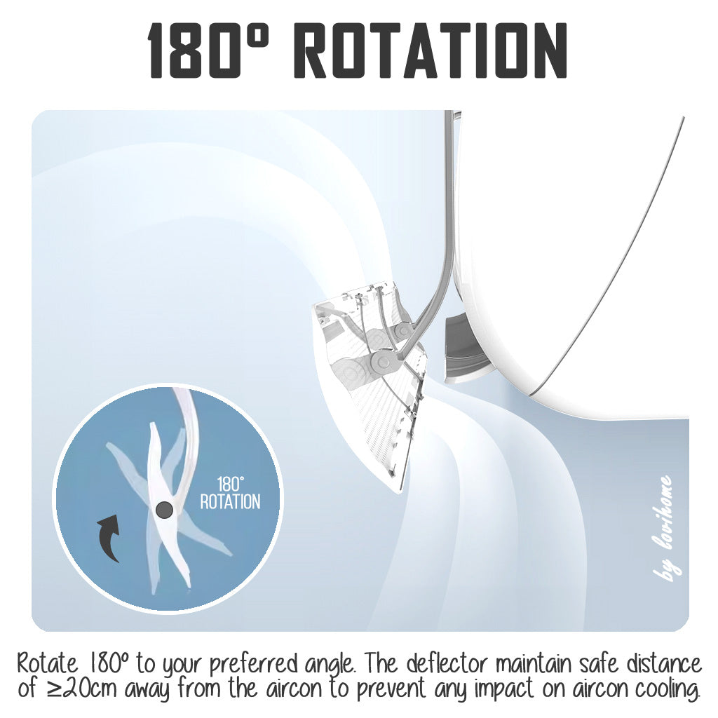 - 180 degrees adjustable aircon wind deflector, recommended to deflect cold air upwards or as a direct windshield;