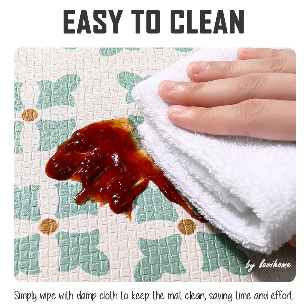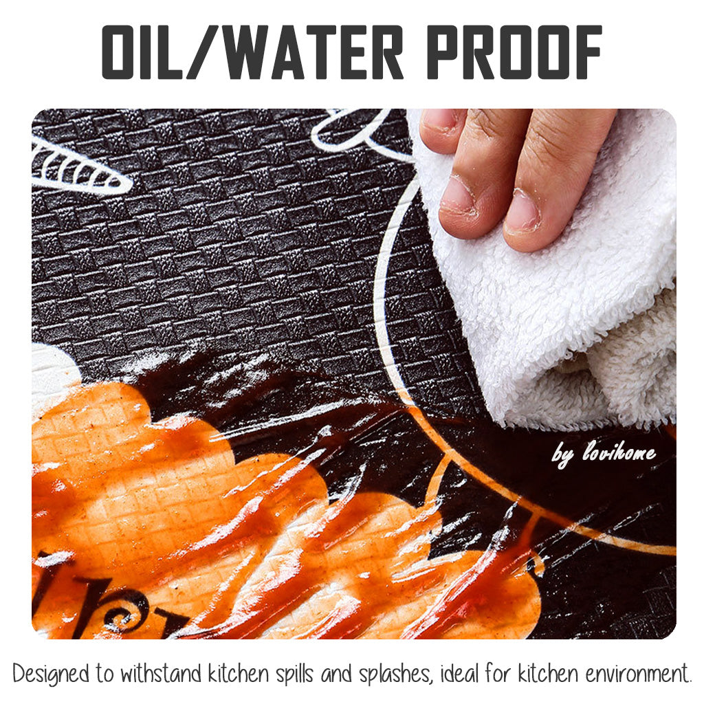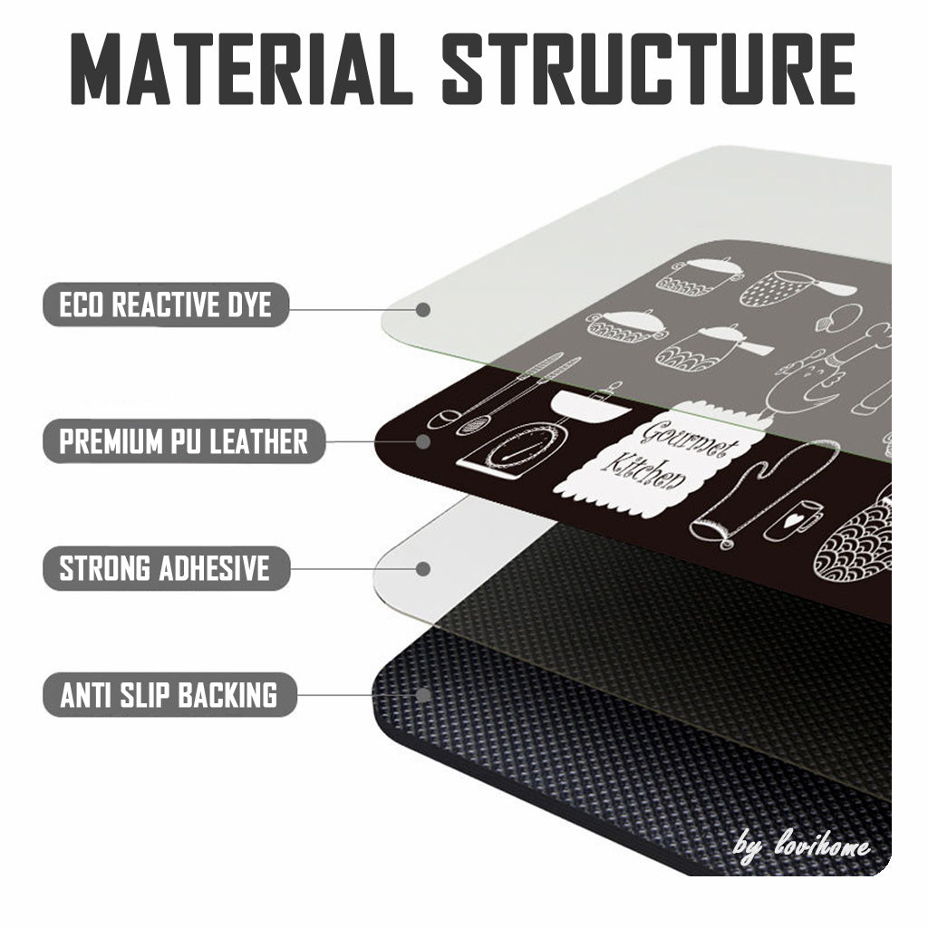 Kitchen PU Leather Blue Elegance 45x75cm 45x150cm Non Slip Floor Mat Oil-proof Scratch Resistant